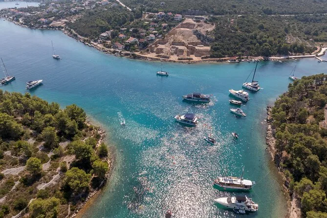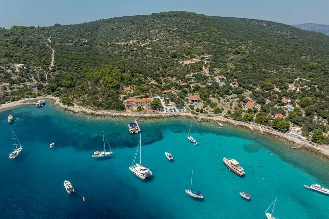 Imbarcati a Split per una giornata tra nuoto e snorkeling nella baia di Nečujam, passeggiata a Maslinica sull’isola di Šolta e relax o paddle nella famosa Laguna Blu croata. Pranzo e vino a bordo, attrezzatura inclusa—porta solo curiosità e un asciugamano asciutto.