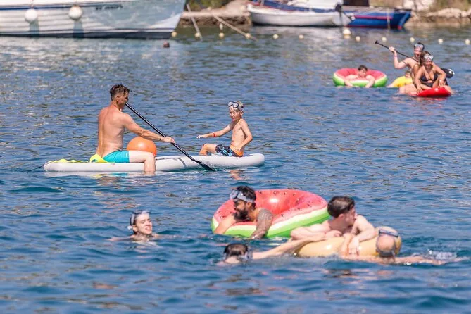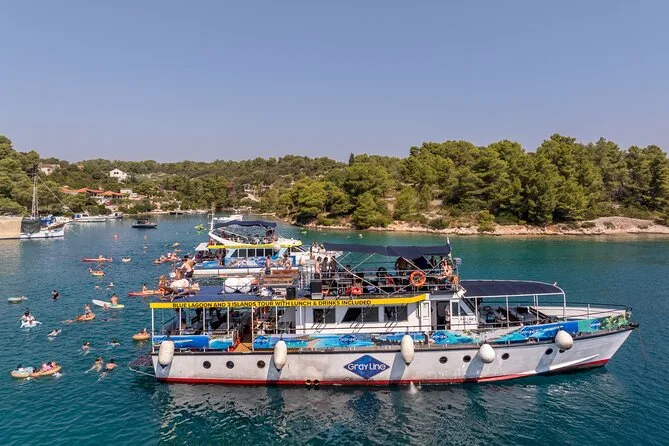 La giornata include partenza dal porto di Split con check-in mezz’ora prima; uso di gonfiabili e paddleboard; succhi e acqua illimitati durante la crociera; maschere per snorkeling fornite; pranzo a bordo con scelta tra hamburger di manzo, tonno o vegetariano più patatine alle 13:00; vino disponibile dopo le 13:00; soste a Nečujam Bay, villaggio di Maslinica sull’isola di Šolta e tempo per nuotare nella Laguna Blu prima del ritorno a Split.