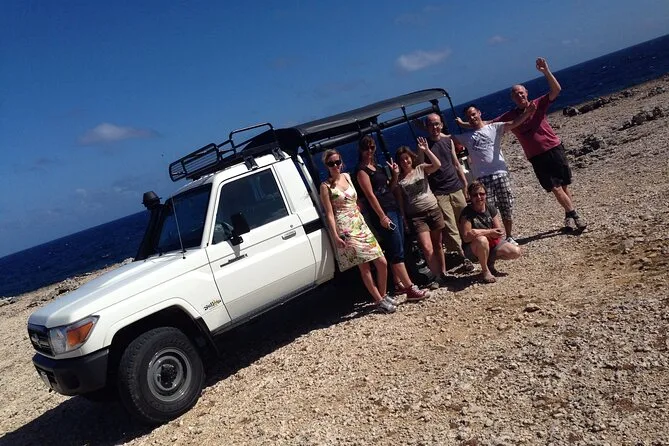 Il tour include pick-up e drop-off in jeep da hotel o porto, tutta l’attrezzatura da snorkeling (maschera, pinne, giubbotto), ingressi a spiagge come Cas Abao e grotte di Shete Boka, una bevanda fresca e l’uso di un lettino a Cas Abao—porta costume e un po’ di contanti se vuoi pranzare al bar prima di tornare.