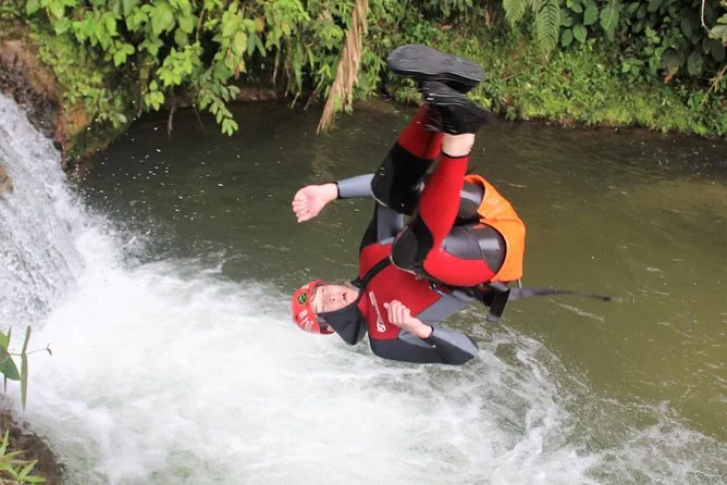 Il tuo giorno comprende tutta l’attrezzatura necessaria come mute e caschi, guide locali certificate che si occupano della sicurezza e delle foto, trasporto privato da Baños a Cashaurco e ritorno, più un pranzo fresco con opzioni vegane, così torni in città ancora un po’ fradicio ma felice.