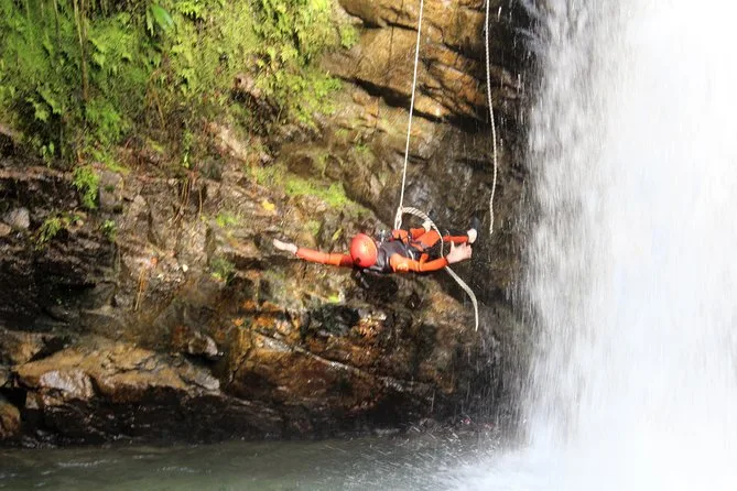 Il primo salto mi ha colto di sorpresa—pensavo sarebbe stato più spaventoso, ma in realtà è stato liberatorio. L’acqua fredda mi ha schiaffeggiato la faccia e all’improvviso tutti ridevano (qualcuno ha fatto un urlo strano, credo proprio che fossi io). Ci sono stati momenti in cui galleggiavamo silenziosi tra rocce e pareti muschiose, poi esplosioni di adrenalina mentre scivolavamo o volavamo sulla zipline. Diego continuava a controllare tutti—ricordava anche che ero vegano e ha scherzato sul “tofu della giungla” per il pranzo. Sono quei piccoli dettagli che restano nel cuore.