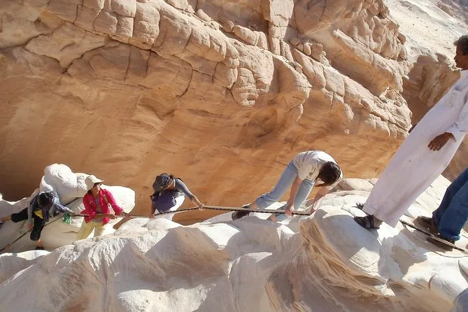 La tua giornata include il pick-up in jeep 4x4 dal tuo hotel a Dahab con una guida locale che parla inglese, tutti i trasferimenti tra i siti come Coloured Canyon e White Canyon, il tè tradizionale beduino all’oasi di Ain Khudra, il pranzo in un villaggio beduino lungo il percorso e il ritorno in hotel nel tardo pomeriggio.
