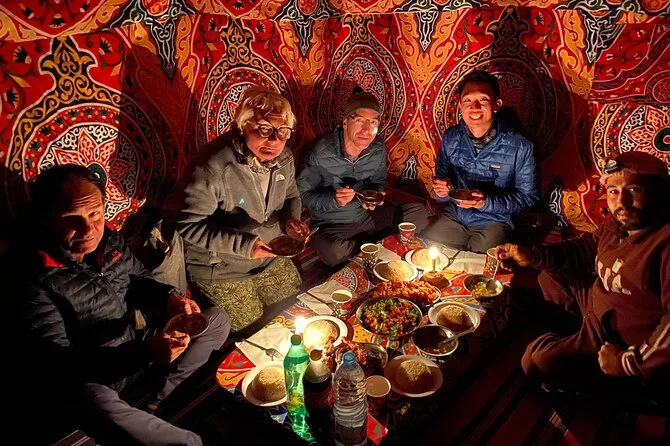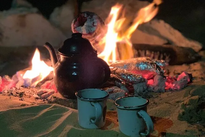La tua avventura con pernottamento include pranzo, cena intorno al fuoco sotto le stelle del deserto, colazione all’alba tra le dune, la guida di beduini locali che conoscono ogni angolo di queste sabbie—e il tempo per immergerti in una sorgente termale naturale prima di tornare in città.