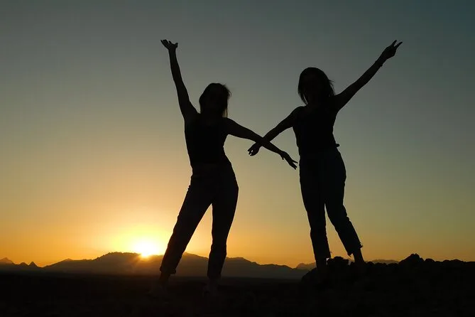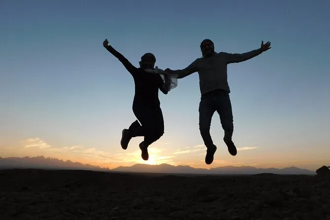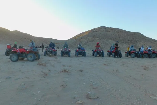 Il tuo giorno include il pick-up e drop-off dal tuo hotel o porto di El Gouna, istruzioni di guida al motor park, tutti i trasferimenti in minivan climatizzato, accompagnamento di una guida locale esperta, soste in un accampamento beduino per tè e shisha, ingresso al canyon di Wadi Billy con tempo per esplorare i siti di fossili, più la cena prima del rientro al calar del sole sulla sabbia.