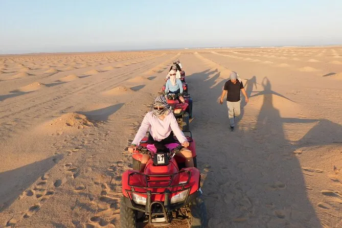 Corri in quad nel deserto di El Gouna, fermati per tè e shisha con i beduini e scopri fossili antichi nel canyon secco di Wadi Billy. Ammira il tramonto sulle scogliere di pietra prima di tornare attraverso la sabbia che si raffredda, guidati da una guida locale. Un mix perfetto di adrenalina e meraviglia silenziosa.