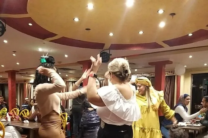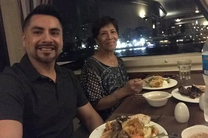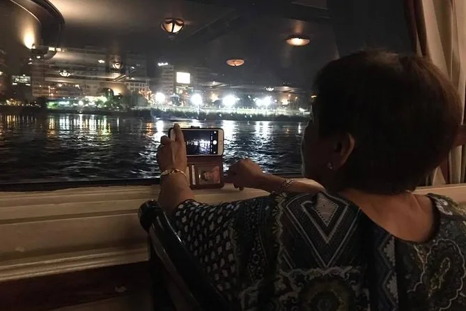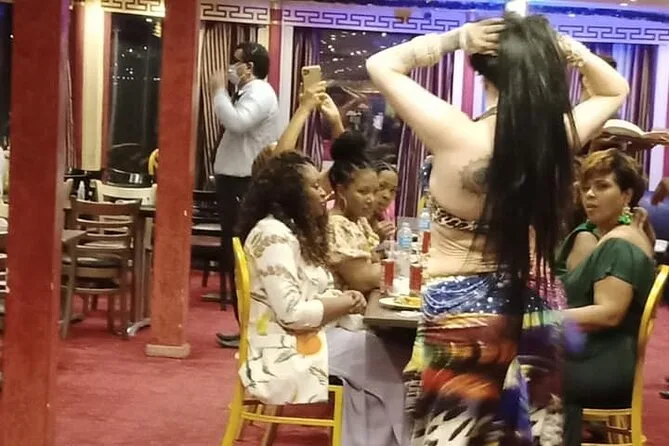 Scivola lungo il Nilo al Cairo dopo il tramonto, condividendo storie durante una cena a buffet egiziana con musica dal vivo. Ammira da vicino la danza del ventre e lo spettacolo tradizionale Tanoura, poi goditi la vista della città dal ponte all’aperto prima di tornare in hotel con il tuo autista.