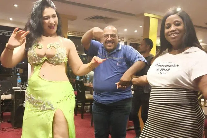 La tua serata include il pick-up in auto privata dall’hotel, tutte le tasse di ingresso per la categoria di crociera sul Nilo scelta, una cena a buffet egiziana completa con insalate e dessert a bordo, più intrattenimento dal vivo con musicisti, danza del ventre e spettacolo Tanoura, prima di tornare comodamente in hotel la sera.