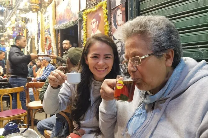 La tua serata include il pick-up dall’hotel al Cairo o Giza, acqua in bottiglia durante il percorso, succo di canna da zucchero o tè al caffè più antico d’Egitto, assistenza per gli acquisti al bazar di Khan El Khalili e la guida di un esperto locale autorizzato, con ritorno al tuo alloggio in serata.