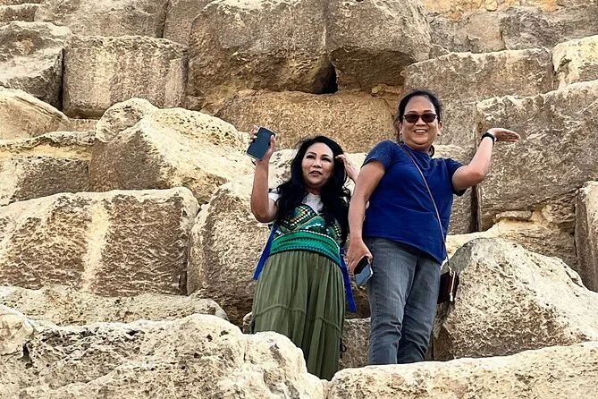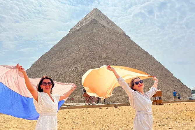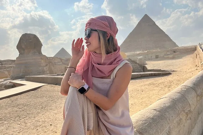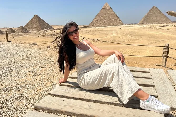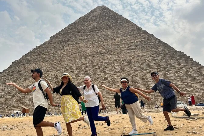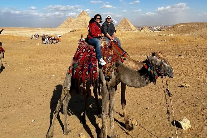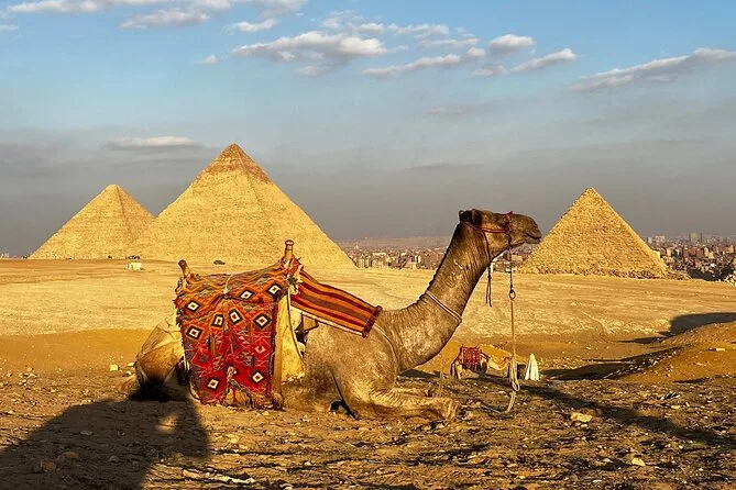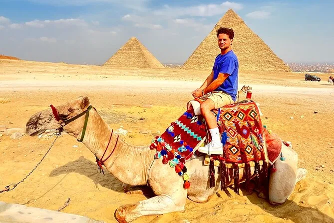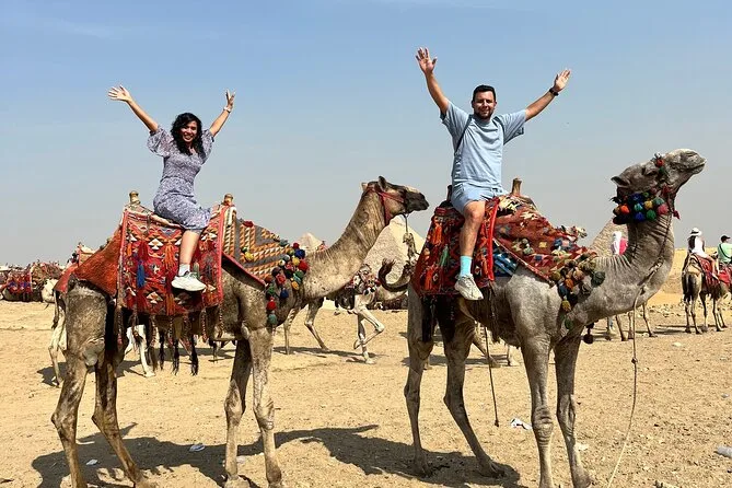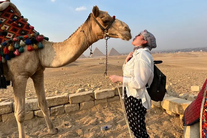 La tua giornata include pick-up privato in auto climatizzata da qualsiasi punto del Cairo, biglietti per la piana di Giza (con accesso opzionale all’interno di Cheope), un giro in cammello di 20 minuti lungo il bordo del deserto vicino alla Sfinge, guida egittologa multilingue che farà anche da fotografo, più pranzo in un locale tipico prima del rientro, con tempo per lo shopping di souvenir se vuoi.