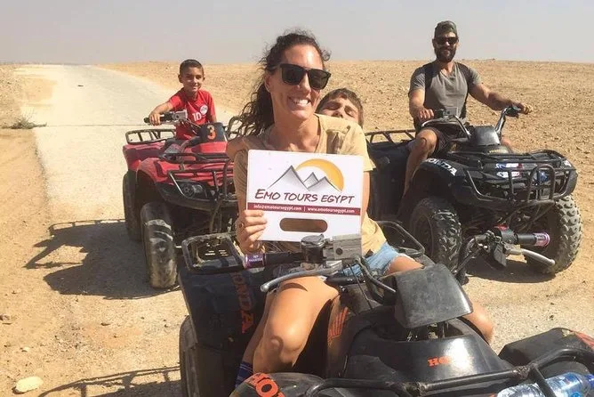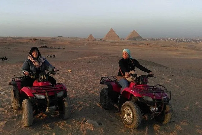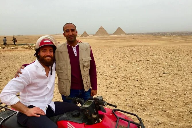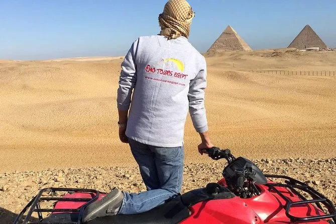 Il tuo giorno include pick-up e rientro in hotel a Il Cairo o Giza, tutte le spese per il giro in quad, acqua in bottiglia gratuita per tutta la durata nel deserto, più una guida locale che ti aiuterà a trovare gli angoli migliori per le foto che non dimenticherai—e se scegli l’opzione, anche i biglietti per avvicinarti alle piramidi prima di tornare a casa polveroso ma soddisfatto.