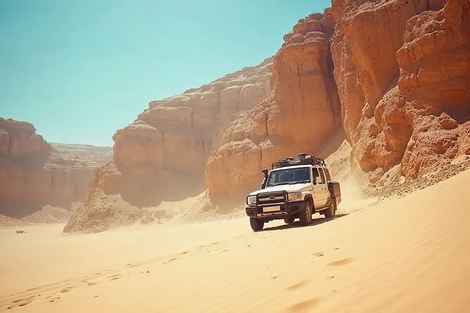 Attraversa i canyon colorati del Sinai in jeep, fai snorkeling nel Blue Hole con la sua vita marina incredibile, condividi un pranzo BBQ in tenda beduina sulle acque turchesi, e vivi il vento del deserto a dorso di cammello e in quad vicino a Dahab. Risate autentiche con la guida locale e momenti di meraviglia che porterai con te a casa.
