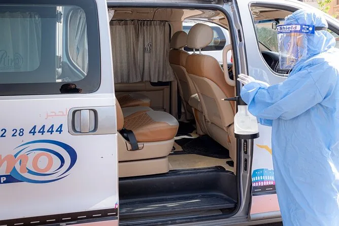 Il tuo trasferimento privato include il ritiro direttamente al terminal di arrivo dell’aeroporto del Cairo da un autista locale, il viaggio in un veicolo climatizzato (berlina o minivan a seconda del numero di persone), copertura assicurativa completa per passeggeri e bagagli secondo gli standard del turismo egiziano, oltre a opzioni flessibili per sedie a rotelle o passeggini se necessario — tutto per portarti in sicurezza al tuo hotel o abitazione in qualsiasi zona del Cairo.