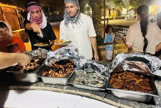 Il campo profumava di carne alla griglia e dolce fumo di shisha. Alcuni si facevano tatuaggi all’henné o indossavano quelle lunghe tuniche per le foto (io ho saltato). La cena era a buffet aperto — tante insalate, kebab affumicati, pane piatto ancora caldo dal fuoco. La ballerina del ventre ha fatto battere le mani a tutti, e durante lo spettacolo Tanoura un ragazzo girava così veloce che mi è venuto il mal di testa solo a guardarlo. C’era anche uno show di fuoco; scintille che volavano nel cielo scuro mentre qualcuno vicino cercava di insegnarmi a dire “grazie” in arabo (ancora non ci riesco). Siamo partiti con la sabbia nelle scarpe e i capelli che profumavano di barbecue — ma continuo a pensare a quel tramonto, a quanto fosse silenzioso tutto laggiù.