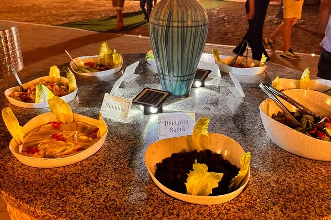 Al tramonto siamo arrivati al campo — lanterne che illuminavano piano, il fumo delle griglie che si alzava nell’aria. Ci hanno offerto piccoli bicchierini di caffè arabo (amaro ma buono) e datteri mentre qualcuno mi dipingeva la mano con l’henné con rapidi tocchi. La cena era a buffet: pollo alla griglia, insalate, qualcosa di piccante che ancora non so definire. C’era una ballerina del ventre che girava così veloce che la gonna diventava un blur — tutti applaudivano anche senza capire il ritmo. A un certo punto Li ha provato a dire grazie in arabo e il cameriere si è scompisciato dal ridere (a quanto pare sembrava “la mia capra è persa”).
