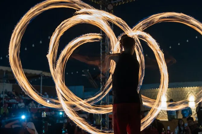 Con il calar della notte, ci sono stati cinque spettacoli diversi: danza del ventre, giochi con il fuoco che hanno fatto trattenere il fiato a tutti, la danza Tanoura… tutto si è mescolato in modo fantastico dopo un po’. Durante il ballo popolare, qualcuno mi ha tirato su per farmi partecipare — probabilmente ho fatto una figuraccia, ma a quel punto non me ne importava più. Sul ritorno a Dubai, le scarpe erano piene di sabbia e la testa stranamente leggera. Ancora oggi penso a quel momento di silenzio in cima a una duna — sai com’è?
