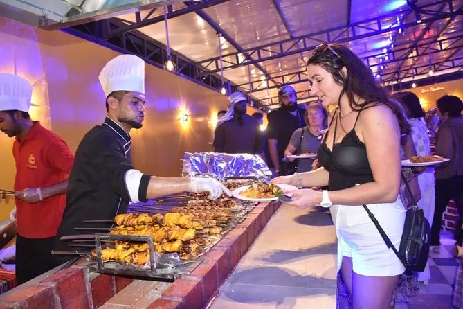 Il tour comprende 30 minuti di quad, dune bashing, sandboarding, giri in cammello, tatuaggi di henné, shisha (in area dedicata), spettacoli dal vivo e cena BBQ a buffet.