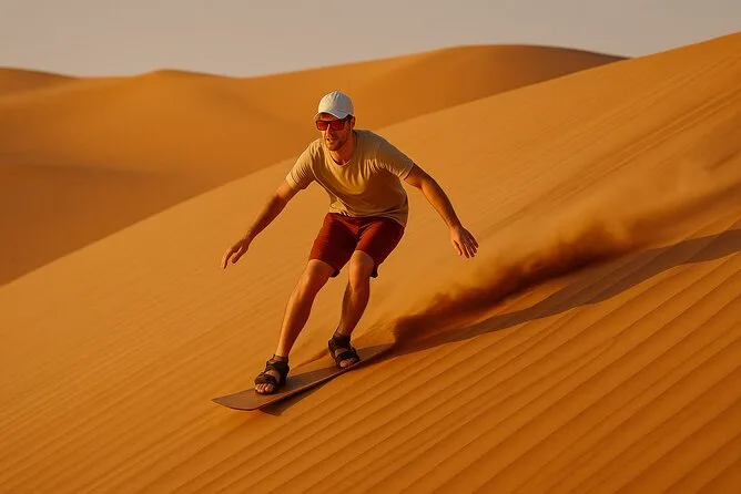 Dopo è arrivato il dune bashing. È difficile spiegare quella sensazione — come una montagna russa ma più silenziosa, fatta eccezione per le risate e gli urletti ogni volta che scivolavamo di lato giù per una duna. Ahmed sembrava divertirsi un mondo a mostrare le sue abilità di guida; ogni tanto si girava con uno sguardo furbo quando qualcuno urlava. Poi abbiamo provato il sandboarding (sono caduto subito), e ci siamo fermati un attimo a guardare come la luce cambiava sulle dune. Era più silenzioso di quanto pensassi, solo qualche voce lontana e il vento — una pace tutta sua.