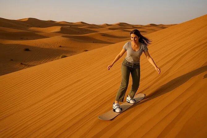 Sentirai il cuore battere forte sulle dune rosse di Dubai con dune bashing e sandboarding, poi ti rilasserai al campo con una cena BBQ e spettacoli dal vivo sotto il cielo del deserto. Prova il giro in cammello o fatti fare un tatuaggio di henné mentre ascolti storie locali — e con il pickup in hotel non devi pensare a nulla. Una serata che resta dentro anche dopo aver tolto l’ultima granello di sabbia.