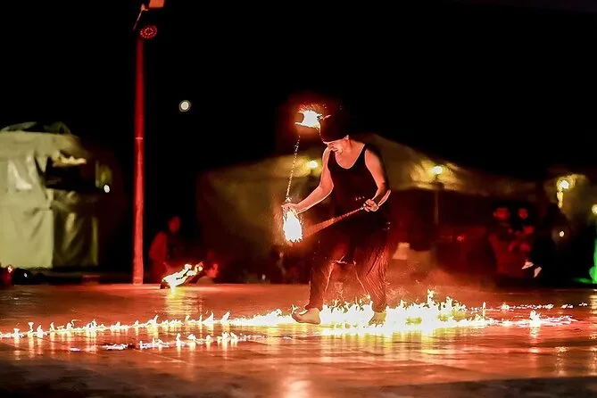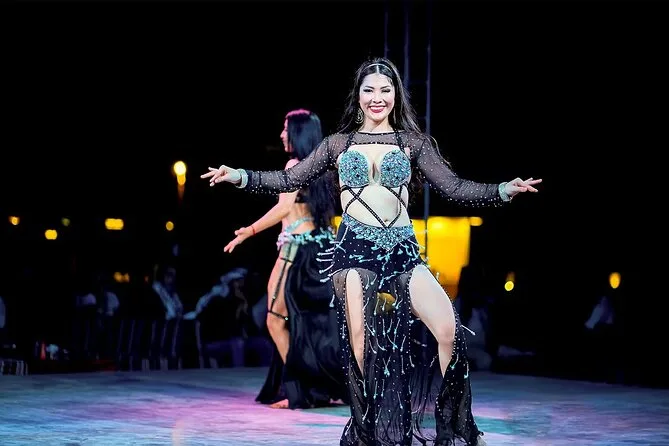 La serata include danza Tanoura, danza del ventre, Yola Dance, Girl Dance, Dabka Dance e uno spettacolo di fuoco.