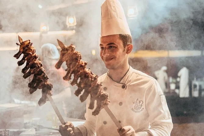 La serata prevede sette spettacoli tra cui performance con il fuoco, danza Tanoura, danza del ventre e musica tradizionale.
