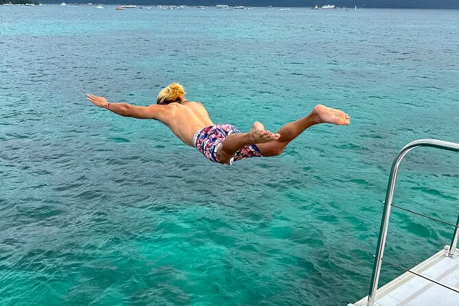 La giornata comprende quattro ore a bordo di un party yacht lungo la costa di Boracay con soste ad Angol Beach e Puka Beach per snorkeling o sport acquatici—tutta l’attrezzatura è fornita—oltre a snack illimitati come pika-pika e cup noodles, cocktail e mocktail serviti da un equipaggio amichevole (e sì, c’è anche una babysitter a bordo se porti i bambini).