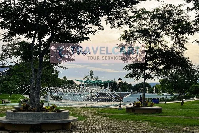 La cattedrale della città mi ha sorpreso — blu e bianca, quasi luminosa sotto il sole. Siamo entrati per un attimo, e il silenzio dentro era così diverso dal caos della strada. Poi abbiamo passeggiato nel parco che un tempo era una fortezza della Seconda Guerra Mondiale (non mi aspettavo di avere i brividi leggendo quelle targhe). L’aria lì sembrava più densa, ma poi siamo ripartiti, con i finestrini abbassati mentre passavamo accanto ai conducenti di triciclo che ci salutavano come se sapessero che eravamo turisti.
