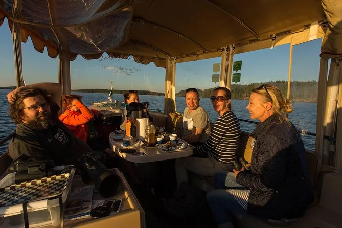 La tua giornata include una crociera narrata di tre ore a bordo di un’ecobarca elettrica con posti comodi, tè pomeridiano con caffè o tè serviti in vere tazze, intrattenimento dal vivo durante tutto il viaggio e la guida di un esperto locale che racconta storie mentre navighi tra le isole cercando le foche insieme.