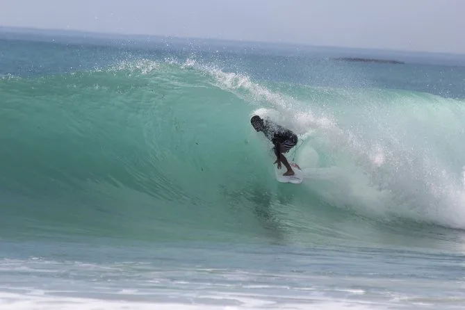 Quando siamo entrati in acqua, la sensazione è stata diversa—più viva di quanto immaginassi. I primi tentativi sono stati un po’ disordinati (sono caduto di brutto), ma Pierre ci incitava da pochi metri di distanza. Ci dava consigli tra un’onda e l’altra: “Aspetta questa!” o “Tieni gli occhi aperti!” Alla fine della sessione, entrambi siamo riusciti a cavalcare almeno un’onda fino a riva. Abbiamo concluso con un breve debriefing sulla spiaggia—Pierre ci ha fatto notare cosa avevamo fatto bene e su cosa lavorare la prossima volta. Sabbia ovunque, ma sorrisi enormi.