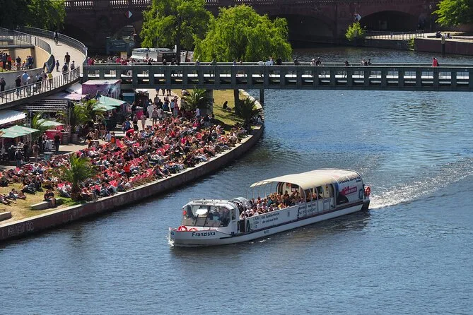 Il tuo tour di un’ora include il commento live di una guida locale in inglese o tedesco mentre navighi nel centro di Berlino. Rimani asciutto sotto un tetto in vetro riscaldato se serve, puoi gustare bevande come caffè o birra acquistabili a bordo e hai accesso ai servizi igienici durante tutta la crociera.