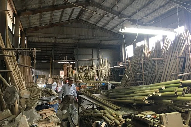 Dopo, abbiamo passeggiato in vicoli dove l’aria profumava leggermente di bambù e pioggia. La parola chiave di questo tour è davvero “incontrare persone.” Alla fabbrica di bambù, ho visto un artigiano dividere i fusti verdi con mani che sembravano allo stesso tempo delicate e forti — lavorava senza quasi guardare, mentre il suo apprendista spiegava tutto in un inglese lento. Il ritmo degli attrezzi era stranamente rilassante. Ho comprato un piccolo sottobicchiere intrecciato (probabilmente troppo bello per la mia tazza di caffè a casa). A volte il percorso cambia se qualche luogo è chiuso; a me non importava — essere lì era già autentico.