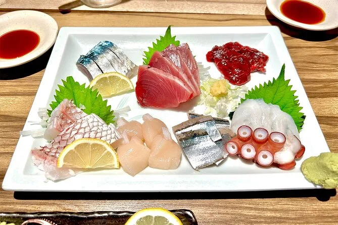 La serata comprende visite a due autentiche izakaya locali nell’area di Tenjin a Fukuoka con una guida amichevole; assaggerai sashimi fresco e pesce alla griglia in una tappa, yakitori in un’altra, proverai bevande regionali tra cui sake tipico di Fukuoka, e riceverai aiuto per ordinare più tante storie prima di tornare a immergerti nella notte della città.