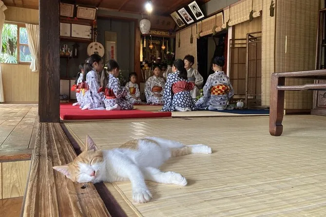 Il tuo giorno include la quota di partecipazione per l’esperienza tradizionale di danza nel tatami con Sumiyoshi Shachu in una casa storica di Kagoshima, più tè sencha locale o caffè serviti con dolcetti di stagione durante la visita.