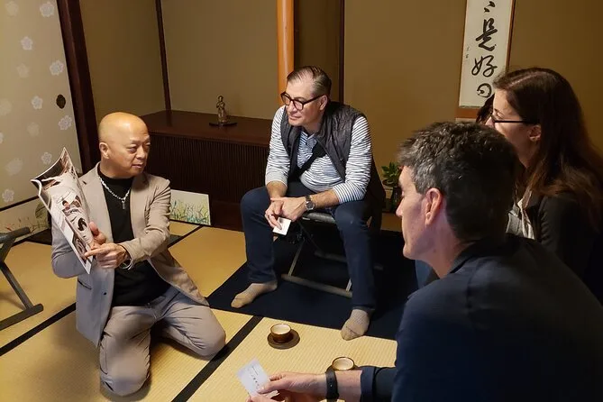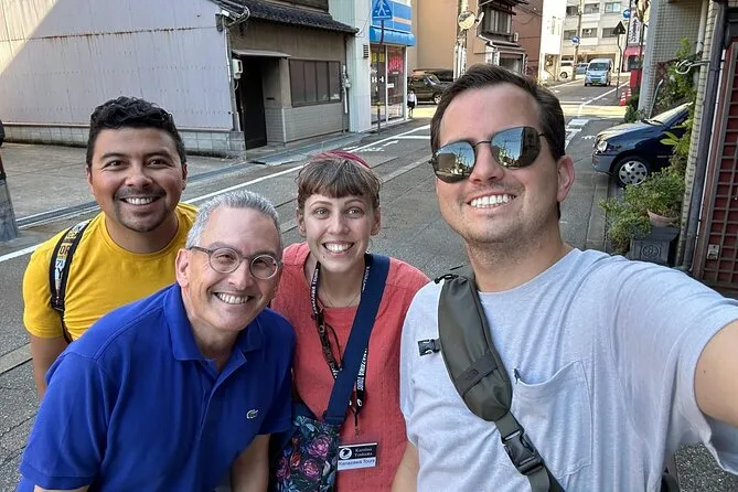 Il quartiere delle geishe aveva un’atmosfera diversa — di nuovo più silenzioso, ma in modo misterioso. Abbiamo camminato per vicoli stretti con case di legno vicine tra loro. Takashi ci ha raccontato di una famosa suonatrice di shamisen che abitava lì; Li ha riso quando ho provato a pronunciare il suo nome in giapponese (l’ho sicuramente storpiato). Più tardi siamo entrati in una piccola casa da tè per un matcha — amaro e erbaceo, non è il mio solito, ma lì era perfetto. Infine il quartiere dei samurai: muri spessi di fango, silenzio rotto solo dai nostri passi, e piccole targhe di legno fuori da alcune porte che spiegavano chi ci abitava. È strano come la storia si senta così vicina senza bisogno di parole.