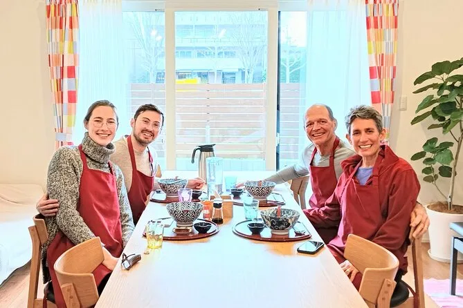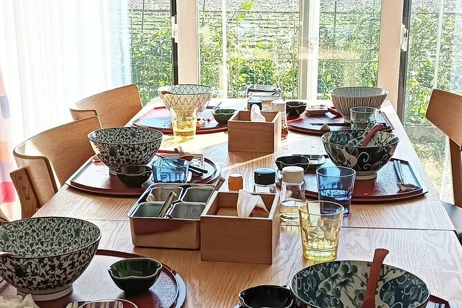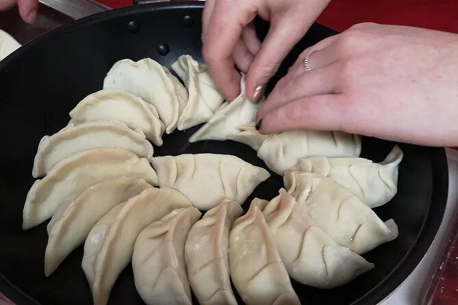 La tua giornata comprende tutti gli ingredienti per preparare il brodo di ramen (con pesce secco), gyoza fatti in casa con involucri fatti a mano, cetrioli sottaceto, istruzioni pratiche dalla tua ospite locale Yuki e il pranzo con tutto quello che avete cucinato insieme al suo tavolo, prima di tornare a esplorare le strade di Kyoto.