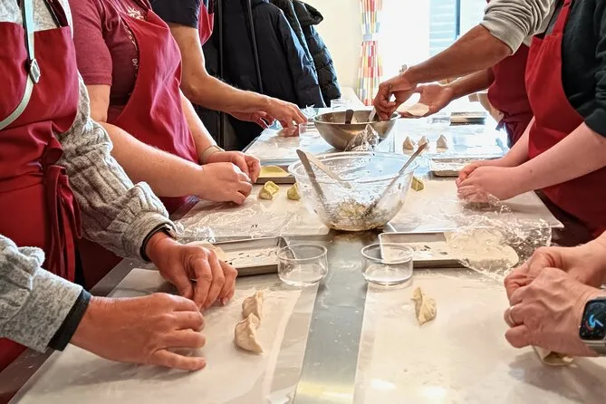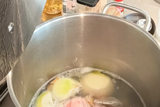 Yuki ha usato la ricetta del brodo di ramen di sua madre — ci ha detto che non è quello che trovi nei ristoranti, ma quello che si mangia a casa dopo la scuola. Non abbiamo fatto le tagliatelle (ci ha spiegato il perché — una questione di tempo e consistenza), ma onestamente, piegare quei ravioli da zero è stata già una bella sfida per me. C’è stato un momento in cui ci siamo fermati tutti perché il profumo del cetriolo sottaceto era così fresco e deciso rispetto al brodo caldo. È curioso come il cibo riesca a fare questo effetto.