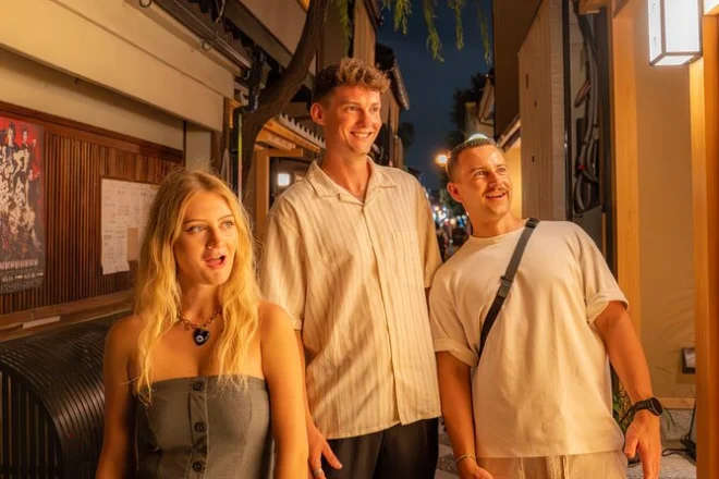 La serata include la guida di un esperto locale nel quartiere Gion di Kyoto, assaggi di 15 piatti tradizionali in diversi piccoli ristoranti e bancarelle, più due bevande lungo il percorso, per concludere tra le strade illuminate dalle lanterne.