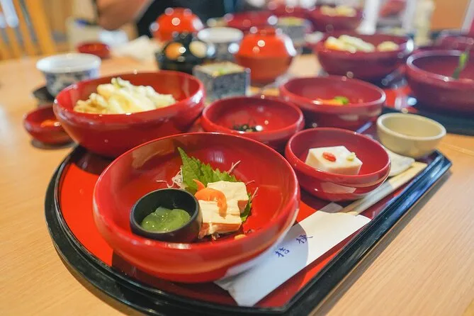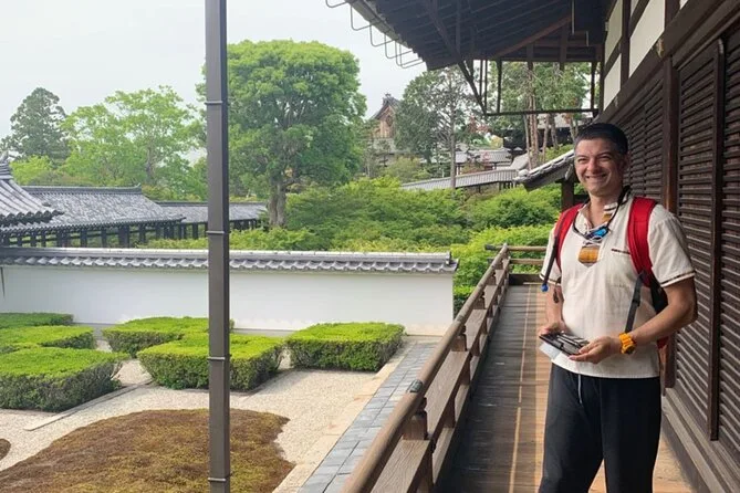 La tua giornata comprende l’ingresso al tempio Tofukuji e ai suoi giardini, una sessione di meditazione zazen di un’ora guidata dai monaci con il supporto della tua guida locale, foto scattate durante la visita così non dovrai preoccuparti del telefono, e un pranzo shojin buddhista tradizionale—il tutto si conclude vicino al tempio Chishaku-in di Kyoto.