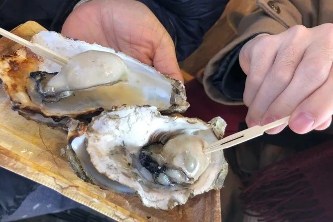 La giornata comprende i biglietti andata e ritorno per il traghetto da Hiroshima a Miyajima, tutti gli ingressi ai santuari e templi visitati (come Itsukushima e Daishoin), passeggiate guidate con una guida locale di Hiroshima che condivide storie e curiosità, tante degustazioni di street food—tra cui ostriche alla griglia—e un pranzo tradizionale in stile Hiroshima prima di rientrare insieme nel pomeriggio.