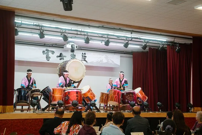 Il tuo giorno include trasporto andata e ritorno in bus climatizzato da Tokyo Station, ingressi per tutte le attrazioni previste come Mt Fuji 5th Station e la funivia Komagatake di Hakone, guida locale in inglese per tutta la giornata, più un pranzo in stile giapponese con tè o caffè (se selezionato) e uno spettacolo dal vivo di tamburi wadaiko prima del rientro serale.