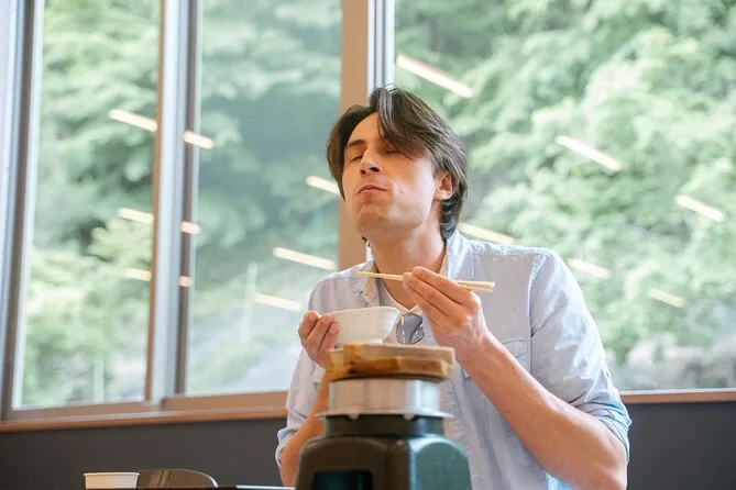 Il pranzo viene servito in una sala luminosa con grandi finestre che si affacciano sulle verdi pendici. Un gruppo sta preparando grandi tamburi di legno—wadaiko—e quando iniziano a suonare, non si può non sentirne il ritmo nel petto. Uno dei percussionisti ci sorride tra una canzone e l’altra; provo a battere le mani ma perdo completamente il tempo. Il pasto è semplice ma confortante—riso, sottaceti, qualcosa di dolce che non saprei descrivere—e Yuki si assicura che le esigenze alimentari siano rispettate (avevo chiesto vegetariano). Onestamente, non mi aspettavo i brividi da uno spettacolo di tamburi a pranzo.
