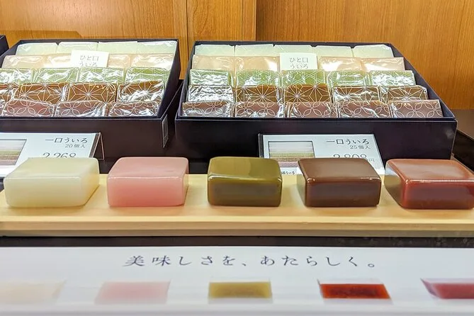 Appena abbiamo iniziato a camminare, l’odore del miso alla griglia ci ha subito attirato verso la nostra prima tappa: il Miso Kushi Katsu. La salsa era densa e dal sapore intenso, avvolgendo spiedini di maiale croccanti e ancora fumanti quando ce li hanno dati. Abbiamo mangiato in piedi, proprio come tutti gli altri intorno a noi. Poi è arrivato il Gohei Mochi: polpette di riso appiccicose infilzate su uno stecco, spennellate con due tipi di miso e grigliate fino a prendere un leggero colore bruciacchiato. La guida ci ha raccontato che ogni negozio ha la sua ricetta segreta per la salsa, rendendo ogni boccone unico.