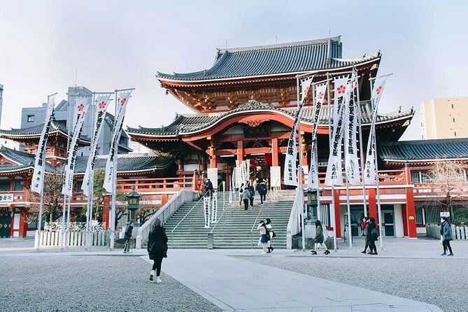 Ci siamo incontrati con la guida proprio fuori da Osu Kannon, dove il brusio dei passanti si mescolava al suono del campanile di un tempio vicino. La prima cosa che ho notato è stata la determinazione con cui tutti si muovevano: i locali si facevano strada tra vicoli stretti, decorati da colorati striscioni e piccoli negozi. La guida ha iniziato spiegandoci la differenza tra il santuario shintoista da una parte e il tempio buddista dall’altra, un dettaglio a cui non avevo mai fatto caso prima.