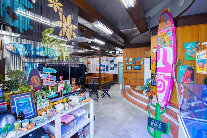 Quasi perdo il punto d’incontro perché mi sono distratto con un gatto che dormiva su uno scooter fuori dal negozio. Il personale mi ha sorriso e fatto cenno di entrare con calma—niente fretta, niente stress. La nostra guida, Yuya, ha distribuito le mute e ha scherzato su quanto sarei stato goffo a metterla (aveva ragione). L’aria profumava leggermente di salsedine e crema solare, e sentivo qualcuno ridere nel camerino. L’atmosfera era rilassata, niente a che vedere con quei tour dove ti spostano in gruppo come pecore.