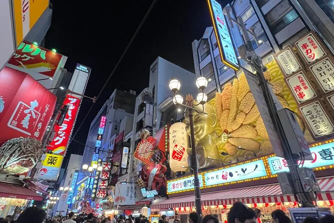 Il tuo giorno include l’incontro con la guida locale in inglese alla stazione di Namba, l’esplorazione del parco del Castello di Osaka (ingresso opzionale), i trasferimenti con i mezzi pubblici (biglietto non incluso), la degustazione di cibi freschi al Mercato Kuromon Ichiba, l’esperienza delle atmosfere di festa di Shinsekai, una semplice cerimonia del tè in un passaggio commerciale e la conclusione vicino a Dotombori per foto e souvenir prima di tornare in treno.