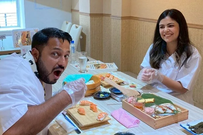 Divertiti a modellare nigiri e arrotolare maki insieme a istruttori locali a Namba, assaggia il sushi fresco fatto da te, sorseggia sake giapponese e ascolta qualche storia di famiglia. Questo corso pratico vicino a Dotonbori include tutti gli ingredienti e il pasto — porta solo la curiosità (e magari evita il bianco).