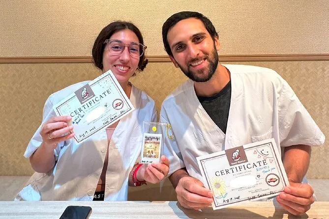 L’esperienza include tutti gli ingredienti freschi per il corso scelto (anche opzioni vegetariane su richiesta), grembiuli e utensili, la guida di istruttori amichevoli che parlano inglese nel cuore di Namba vicino a Dotonbori, più il pasto completo di sushi fatto a mano con degustazione di sake giapponese prima di concludere — prenotazioni anche lo stesso giorno.