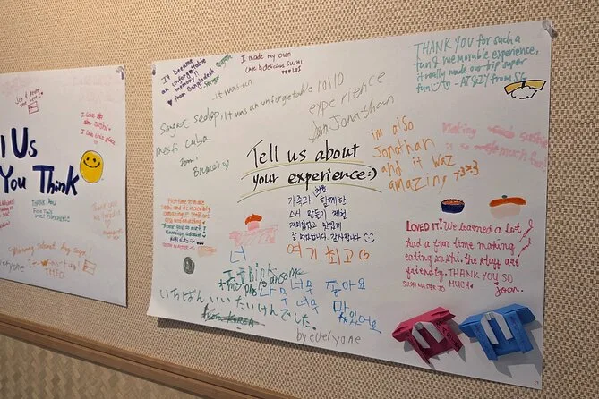 Ho scelto il corso di sushi rolls perché offrono opzioni vegetariane se le chiedi in anticipo (basta dirlo al momento della prenotazione). Arrotolare l’alga è più complicato di quanto pensassi — il mio roll di cetriolo si è aperto, ma il sapore era ottimo lo stesso. Quando finalmente ci siamo seduti a mangiare quello che avevamo preparato, c’è stato un attimo di silenzio mentre tutti assaggiavano il primo boccone. Omelette dolce, riso fresco, alga salata… ricordo ancora quel mix di sapori. Poi qualcuno ha rovesciato la salsa di soia e siamo scoppiati tutti a ridere di nuovo. L’esperienza è durata circa 90 minuti, ma è volata via.