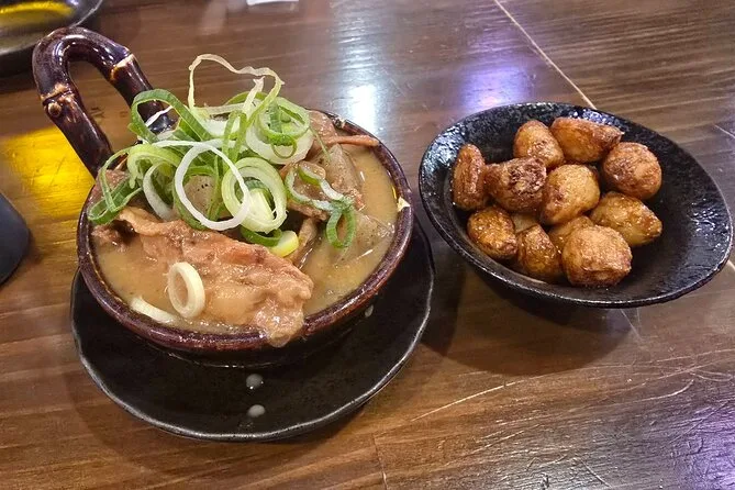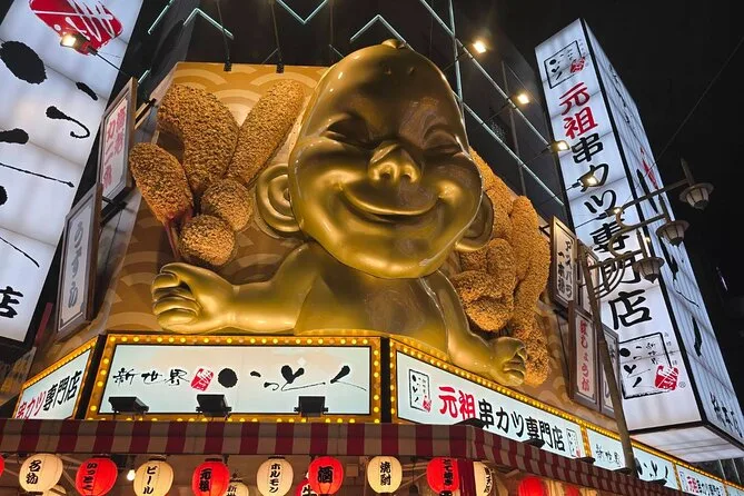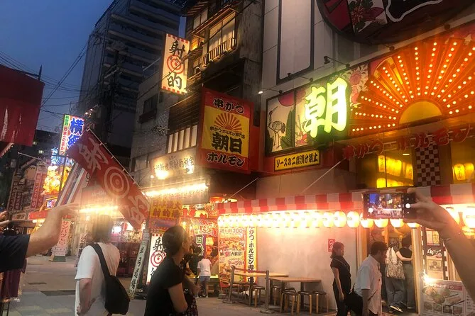 Esplora il quartiere Shinsekai di Osaka con una guida locale, assaggiando oltre 15 piatti in cinque locali unici—dal croccante kushikatsu al caldo takoyaki—e goditi tre drink durante il percorso. Risate, storie sorprendenti sulla Tsutenkaku Tower, gente amichevole e momenti in cui dimenticherai di essere in un tour.