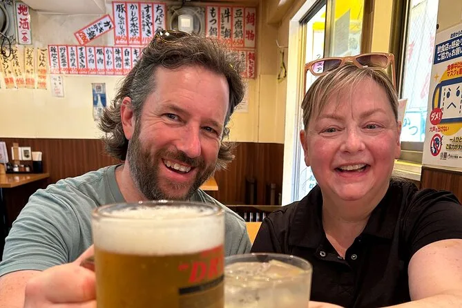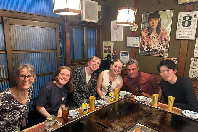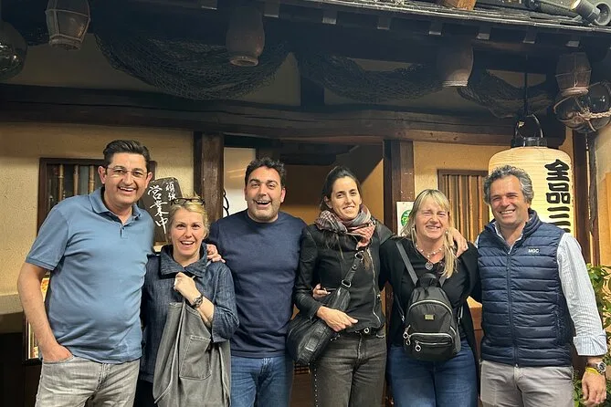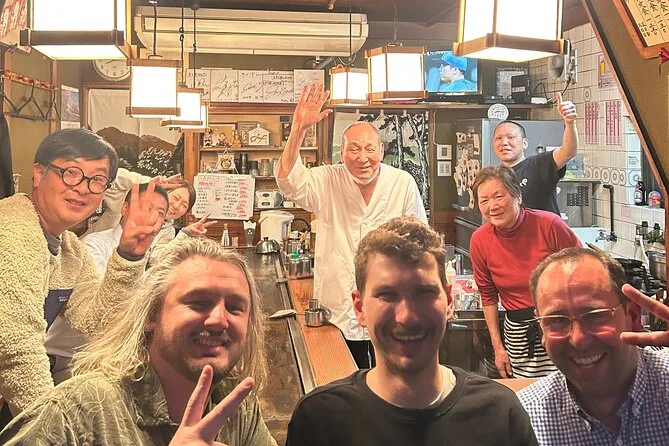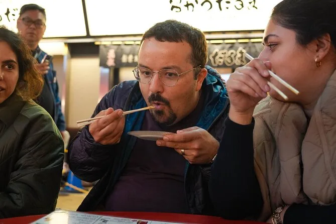 Tra la seconda e la terza fermata, abbiamo passato una porta illuminata da lanterne dove suonava un vecchio disco jazz. La guida ha fatto un cenno al proprietario, che ci ha salutati timidamente—sembrava che qui tutti si conoscessero. All’ultimo izakaya ci siamo seduti su sgabelli bassi e abbiamo provato sashimi con sake (succo per i bambini). C’è stato un momento in cui tutto si è fatto silenzioso, tranne le risate di un altro tavolo e il tintinnio dei bicchieri. Ho pensato a quanto fossimo lontani da casa, ma in qualche modo del tutto a nostro agio.