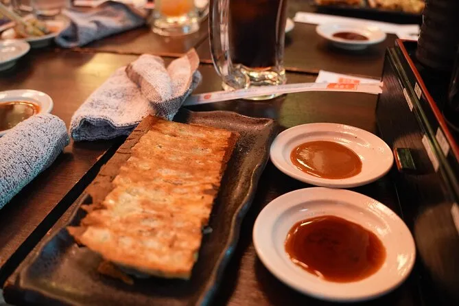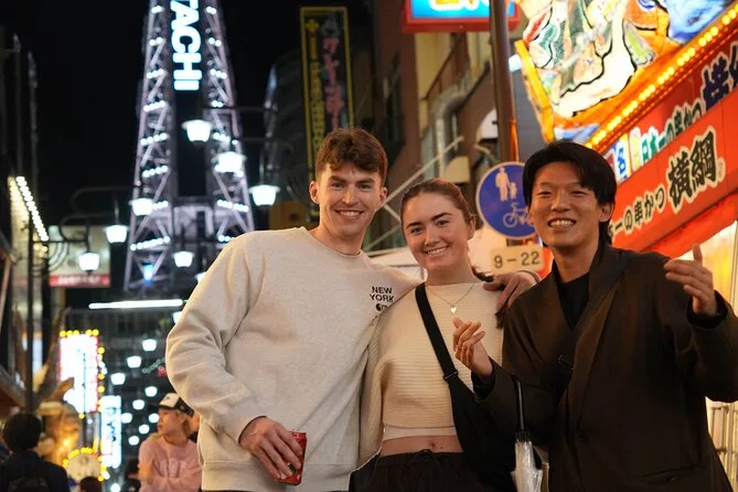 La tua serata include passeggiate guidate in cinque locali tipici di Shinsekai con degustazioni di kushikatsu, takoyaki, sashimi e una bevanda inclusa (alcolica o no) a persona. La guida ti racconterà le usanze locali sulle bevande e avrai tante occasioni per chiacchierare con gli abitanti del posto prima di continuare la tua avventura notturna in autonomia.